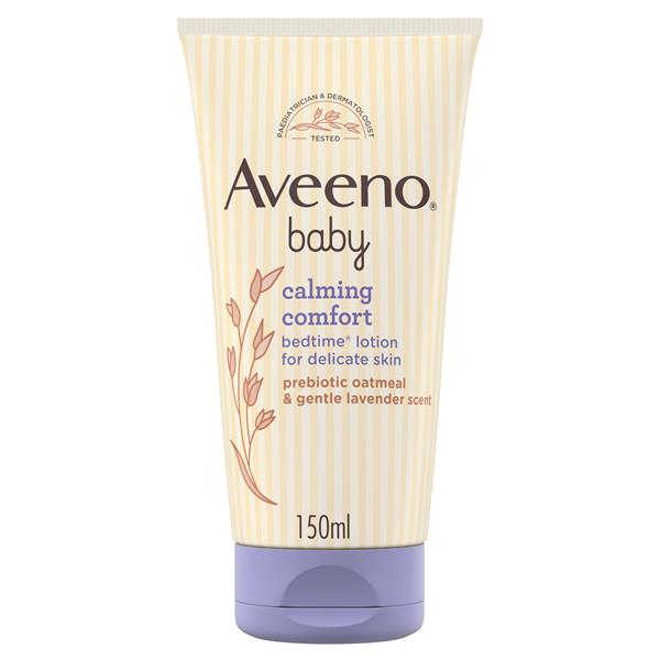 With gentle lavender & vanilla scent, AVEENO Baby Calming Comfort™ Bedtime® Lotion’s gentle formula is designed to help soothe your baby's delicate skin and leaves it feeling soft, smooth, healthy-looking, comfortable, and nourished. This non-greasy lotion is pH-balanced, free from dyes and is paediatrician & dermatologist tested.