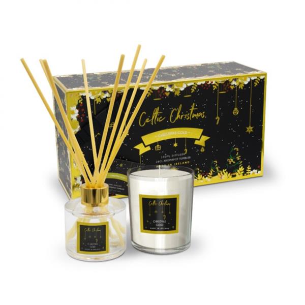 All products are made in Ireland using recycled glass and sustainable packaging. The set includes a beautiful aromapot tumbler candle and a delightful reed diffuser, both infused with the scent of baked apples. The glowing golden wax of the candle adds a touch of elegance to your decor, while the reed diffuser fills the air with a long-lasting and consistent fragrance