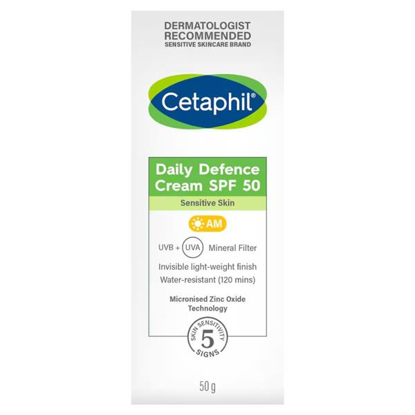 Cetaphil Daily Defence Cream SPF 50 is a lightweight face day cream that provides UVA/UVB protection, helping to defend skin against the effects of daily exposure to sunlight & helps prevent skin ageing due to sun exposure.