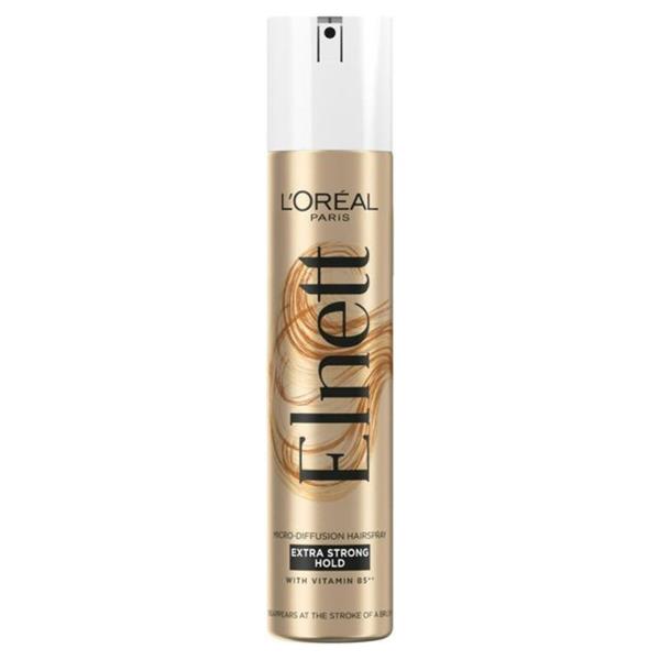 L’Oréal Paris Elnett UK's No.1 Hairspray*. Styling women for generations, the gold can has always been at the heart of great style. Achieve your desired hairstyle with Elnett Extra Strong Hold Hairspray. The iconic micro diffuser hairspray sets your everyday style easily and weightlessly for up to 72h of undetectable hold**. Our new formula is enriched with Vitamin B5*** to protect hair from frizz and external aggressions. This iconic hairspray enhances natural hair movement and shine, without leaving it feeling stiff or sticky, and disappears at the stroke of a brush. *Source ©2023 NielsenIQ value sales, Styling, Hairspray category (client defined), 52 w/e 30/12/2023 in United Kingdom (GB+NI) Total Coverage **Instrumental test. ***Provitamin B5.