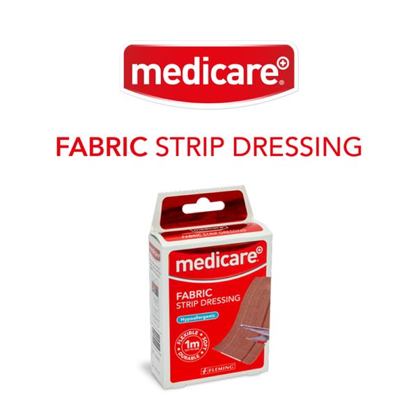 Medicare Fabric Strip Dressing is a comfortable and convenient way to keep wounds clean, ventilated and protected by providing long lasting, reliable adhesion. It’s 1-meter-long strip means that you can cut it to suit to the size of plaster you need. The adhesive used on the Medicare Strip Dressing is hypoallergenic, kind to skin, comfortable, and won’t irritate the skin. They have a strong adhesion and will protect the wound from contamination and infection whilst allowing it to breathe and heal quickly. The non-stick, extra absorbent, non-adherent pad ensures that the adhesive doesn’t stick to the wound, causing irritation. FEATURES: • Hypoallergenic • Highly breathable • Stretch Fabric promotes flexibility • Non-stick, absorbent, non-adherent wound pad • Size: 6cm x 1m • Quantity: 1 strip per pack • Latex Free Common cuts and lacerations can easily become infected. You can help prevent infection using the simple Clean, Apply, Cover process. Clean Infections in cuts and lacerations can often come from the hands. Before attending to a cut or laceration, make sure to clean your hands with an alcohol prep pad. Medicare Alcohol Prep Pads have a 99% alcohol content to clear germs away from your hands before you attend to a cut or laceration. Apply Applying a non-alcohol solution, spray, cream or wipe to a cut or laceration before covering with a plaster or dressing can help ward off infection, encourage healing and reduce scarring. Medicare Alcohol-Free Cleansing Wipes are ideal for this purpose as they are gentle on skin and are no-sting. Cover Covering a cut with a sterile dressing or plaster after cleaning it can ward off infection and promote healing. The Medicare Fabric Plaster range are hypoallergenic and allow the wound to ventilate, and their skin-friendly adhesive won't irritate the skin.