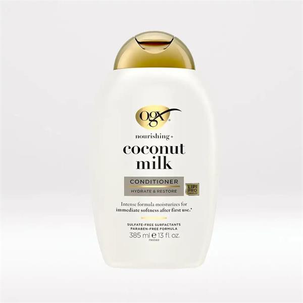 Hydrate & restore hair with OGX Nourishing + Coconut Milk Conditioner. This conditioner from the #1 Hair Repair Brand* delivers immediate softness after the first use. Our new & improved formula protects hair from excessive loss of lipids & proteins which creates frizz & breakage. Now with Lipi Pro Shield™ Technology, the hydrating conditioner provides 2x more protein & lipid protection** for healthy hair. Coconut milk infused formula softens strands for smooth & healthy hair while the creamy coconut, white peach & shea butter scent leaves hair smelling irresistible. After shampooing, apply generously to hair, wait 3-5 minutes & rinse. Conditioner carefully formulated to be without sulfated surfactants, parabens, phthalates, microplastics, & dyes.