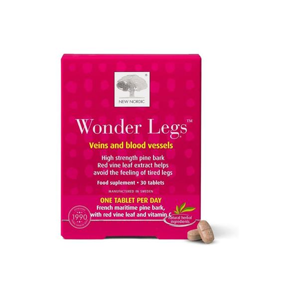 Wonder Legs™ is the tablet which may help maintain a normal vein and blood vessel function to help avoid the feeling of tired legs. The unique bioactive nutrient combination contained in each tablet helps avoid the feeling of tired legs after prolonged standing or sitting. The tablet, which is manufactured in Sweden, contains a herbal combination extract of French maritime pine bark, red vine leaf extract, plus vitamin C.